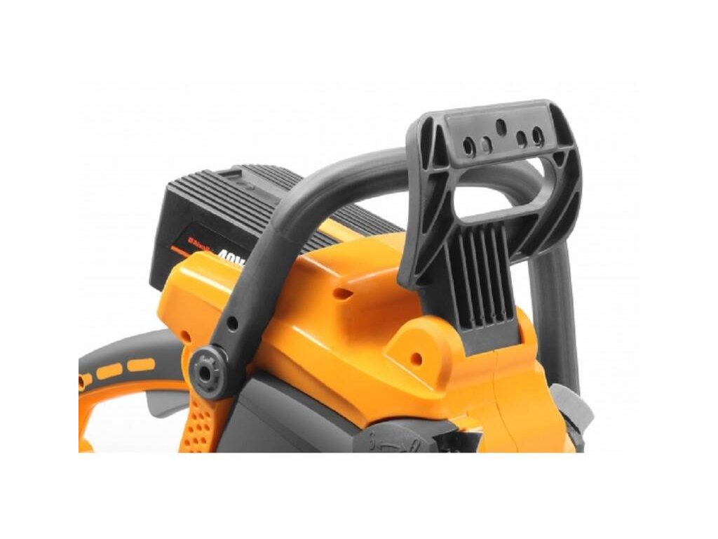 Pila je poháněna 40 V silným, bezuhlíkovým elektromotorem PowerMax s dostatečně vysokým výkonem. Díky modernímu akumulátoru s vyspělou elektronikou a ochrannou jednotlivých článků při nabíjení, zvládnete nabít akumulátor za + - 60 minut, podle typu vybrané nabíječky. Doba běhu stroje se liší v závislosti na zátěži a použité baterii od 25 do 70 minut. Vyznačuje se snadnou manipulací, minimálními nároky na údržbu a nízkou hmotností.