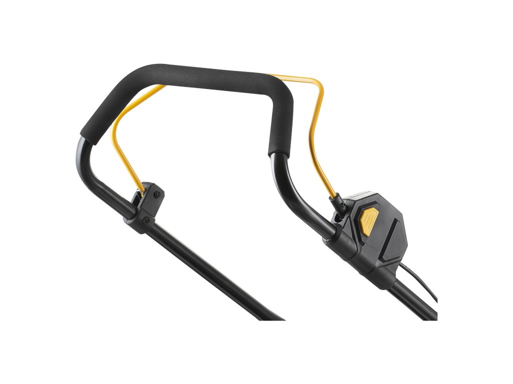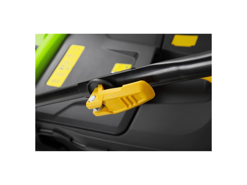 Aby se vám se sekačkou dobře manipulovalo má výškově nastavitelnou rukojeť a pro snadný rozjezd jsou zde robustní kolečka z odolného plastu. Sekačka je opatřena bezpečnostním spínačem, který brání náhodnému zapnutí čepele.
