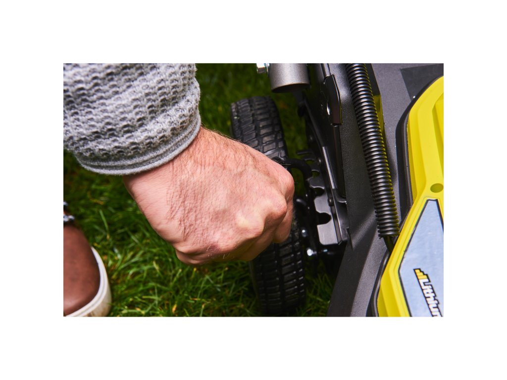 Sekačka je poháněna Li-ion baterií s kapacitou 5,0 Ah a výkonným 18 V bezuhlíkovým motorem, který dosahuje rychlosti otáček 3 800 min-1 a poskytuje tak prémiový výkon i v těžších podmínkách. Výhodou této sekačky je také velice jednoduché nastavení výšky sekání se šesti polohami, které se provádí pomocí zatažení páčky umístěné na šasi sekačky.