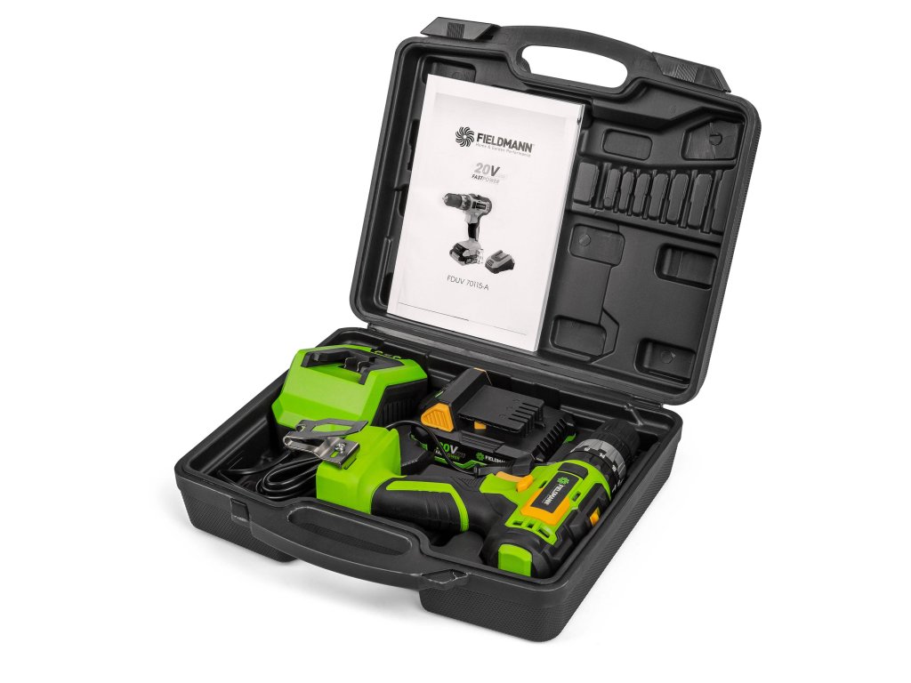 Akumulátorová příklepová vrtačka/šroubovák Fieldmann FDUV 70115-A nabízí perfektní řešení pro všechny řemeslníky a kutily. Použití je vhodné zejména tam, kde není přístup k elektřině nebo pokud nechcete manipulovat s kabelem.