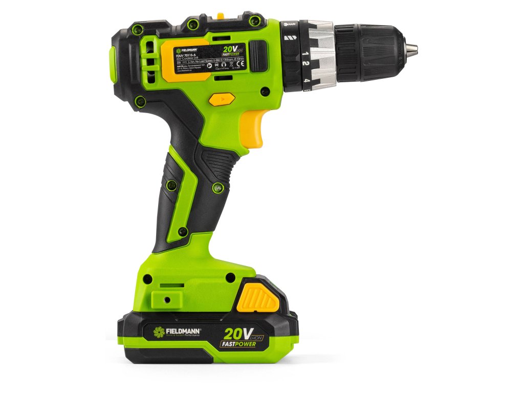 Vysokého výkonu dosahuje díky plnému využití síly 1x 20V akumulátoru ve spojení s elektronickou řídící jednotkou a maximálním kroutícím momentem 35 N.m. Baterii lze využít do všech zařízení, které jsou součástí PROGRAMU FAST POWER 20V. Vrtačka dosahuje vysokého výkonu jak při vrtání, tak i při šroubování.