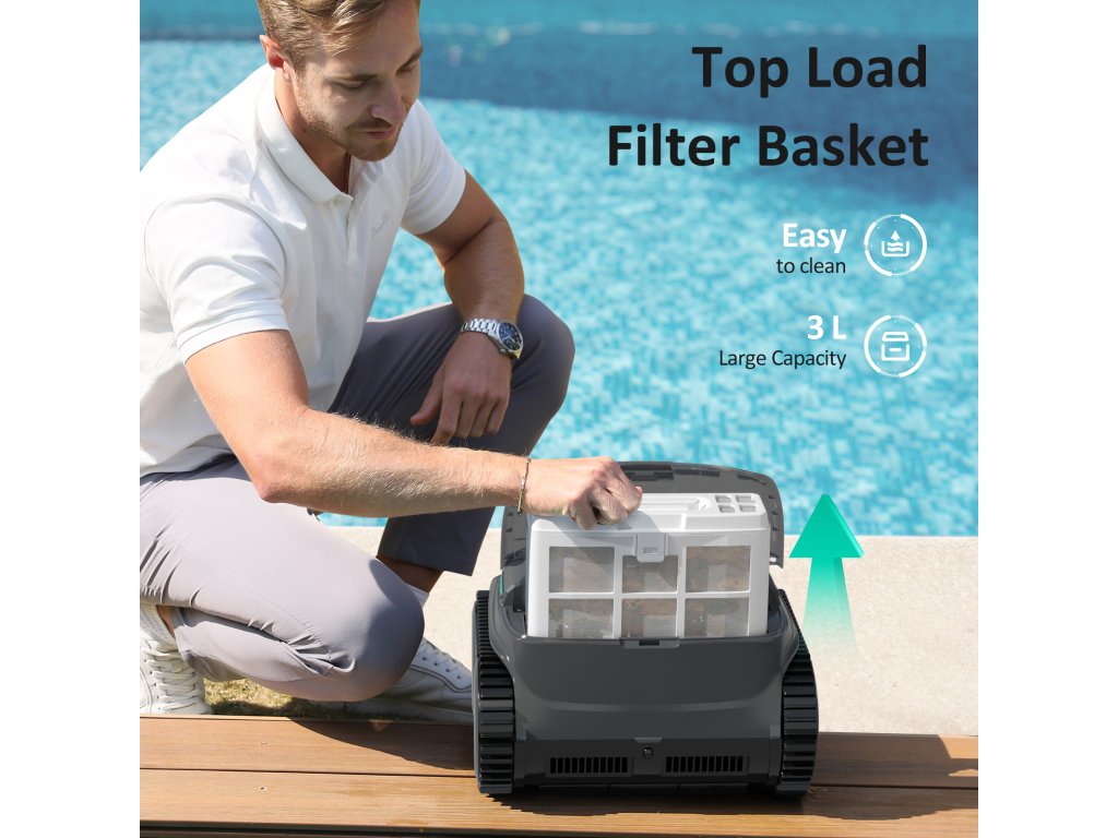 Budoucnost čištění bazénu je tady WYBOT C2 Vision posouvá robotické vysavače na úplně novou úroveň. Díky kombinaci kamery a inteligentních algoritmů dokáže analyzovat prostředí bazénu a přizpůsobit mu své chování. Výsledkem je efektivnější pohyb a důkladnější čištění bez vynechaných míst. Na rozdíl od běžných modelů se nepohybuje náhodně – systematicky mapuje prostor a optimalizuje trasu. To znamená méně času, nižší spotřebu energie a perfektní výsledek. Výkonný motor a kartáče si poradí s hrubými i jemnými nečistotami, zatímco pokročilá filtrace zachytí i ty nejmenší částice. Bazén tak zůstává dlouhodobě čistý a připravený k použití. Díky bezdrátovému provedení a možnosti plánování čištění je jeho používání maximálně pohodlné – vysavač pracuje za vás, kdykoli potřebujete. Klíčové vlastnostiRobotický vysavač s kamerou a AI navigací Gyroskop + inteligentní algoritmy Čištění dna, stěn i vodní linky Dvoustupňová filtrace (180 μm + ultra jemný filtr) Automatické plánování cyklů čištění Bezdrátový provoz Výdrž až 3 hodiny Ovládání přes mobilní aplikaci Vhodný pro větší a složitější bazény5 vychytávek, které z něj dělají TOP model Chytré rozpoznání bazénu a nečistot (kamera + AI) Díky integrované kameře a pokročilým algoritmům vysavač analyzuje prostředí bazénu a rozpoznává nečistoty. Přizpůsobuje tomu svou trasu a způsob čištění, takže pracuje efektivněji než klasické roboty.Připraven na všechny typy povrchů Ať už máte bazén z fólie, dlažby, betonu nebo kamene, vysavač se přizpůsobí každému povrchu. Díky optimalizovanému pohybu a trakci zvládne různé struktury bez ztráty výkonu.Pokročilá dvoustupňová filtrace (HEPA efekt) Kombinace filtračního koše a ultra jemného filtru zachytí vše od listí až po jemný prach a zákal. Voda tak zůstává výrazně čistší a hygieničtější.Inteligentní plánování trasy čištění Vysavač využívá optimalizované trasy pohybu, které minimalizují překryvy a zajišťují maximální pokrytí bazénu. Díky tomu čistí rychleji a efektivněji.Automatické plánování čištění (timer až 168 h) Nastavte si pravidelné čištění podle svých potřeb. Vysavač může pracovat automaticky v nastavených intervalech, takže se o údržbu bazénu nemusíte vůbec starat.Technické parametry:Typ čištění: dno + stěny + vodní linka Výdrž: až 3 hodiny Doba nabíjení: cca 3–3,5 hodiny Baterie: Li-ion 21,6 V / 4600 mAh Výkon: 65 W Filtrace: 180 μm + ultra jemný HEPA filtr (~10 μm) Navigace: gyroskop + kamera Rychlost: cca 10 m/min Ovládání: mobilní aplikace (Bluetooth) Hmotnost: cca 8 kg Doporučená velikost bazénu: cca 150–180 m²Obsah balení:Robotický vysavač WYBOT C2 Vision Nabíječka Filtrační koš Ultra jemný filtr Podpůrné plováky Hák pro vytažení Uživatelský manuál Rychlý startProč je výhodné a bezpečné nakupovat bazénový sortiment od společnosti CF GROUP V oblasti bazénové techniky nehraje roli jen cena, ale především zkušenost, technické zázemí a dlouhodobá odpovědnost za produkt. CF GROUP patří mezi zavedené evropské výrobce a distributory bazénového sortimentu s historií přesahující více než 60 let. To znamená stabilitu, know-how a reálné zkušenosti z tisíců instalací po celé Evropě.Dlouholetá tradice a evropská výroba Skutečný vývoj a technické know-how Bezpečnost a normy Servis a náhradní díly Kompletní sortiment pod jednou střechou Odborné poradenstvíDoplňkové parametry