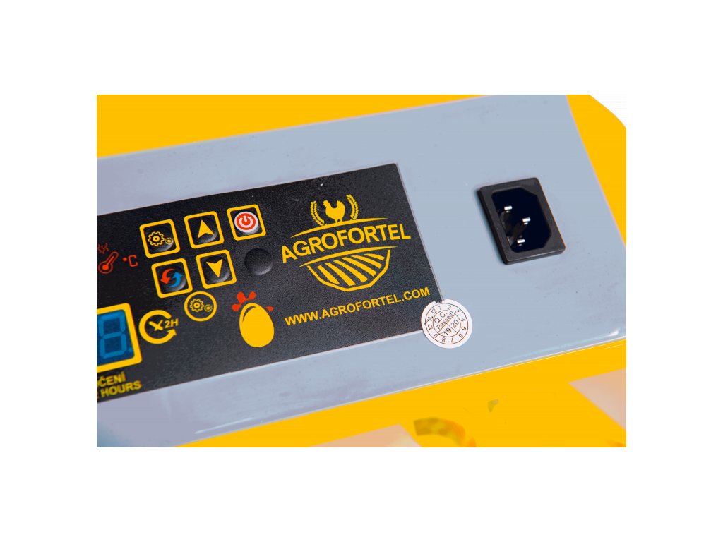 - Digitální displej: Zobrazuje aktuální teplotu, vlhkost a počet dní od zapnutí líhně.