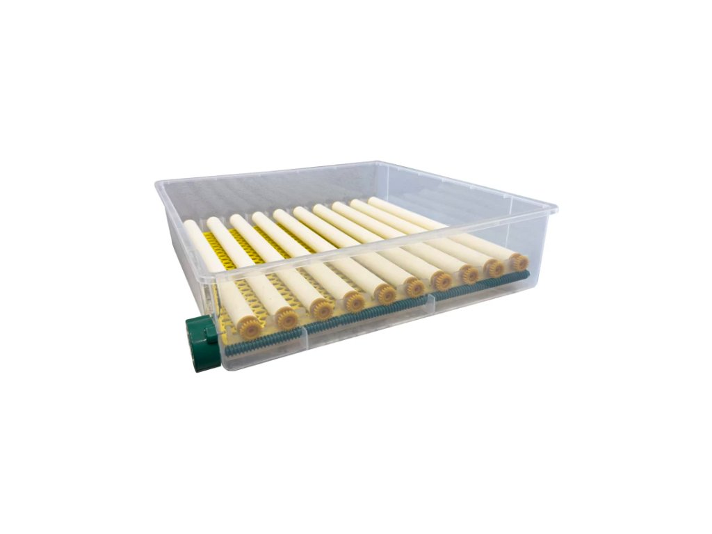 - Univerzální kombidržáky: Unikátní patentovaný systém umožňuje do jednoho držáku umístit buď 1 velké vejce, nebo 4 malá křepelčí vejce, což dává líhni maximální flexibilitu pro různé druhy ptáků.