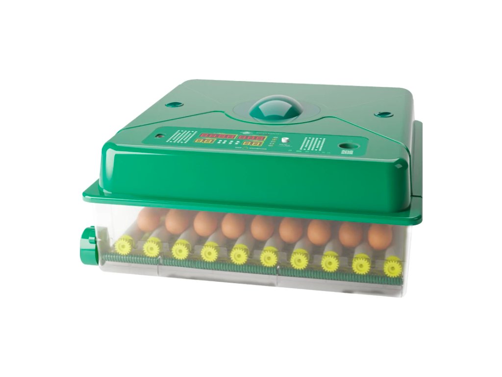 - Poloautomatické otáčení: Pomocí vnějšího otočného mechanismu naklápíte vejce bez nutnosti otevírat líheň. Tento systém zamezuje kolísání teploty a vlhkosti, což výrazně zvyšuje procento vylíhnutých mláďat.