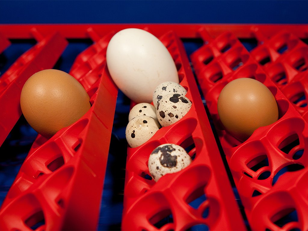 Kapacita s otočným roštem: 24 slepičích, 96 křepelčích, 24 husích, 24 kachních nebo 24 bažantích vajec.