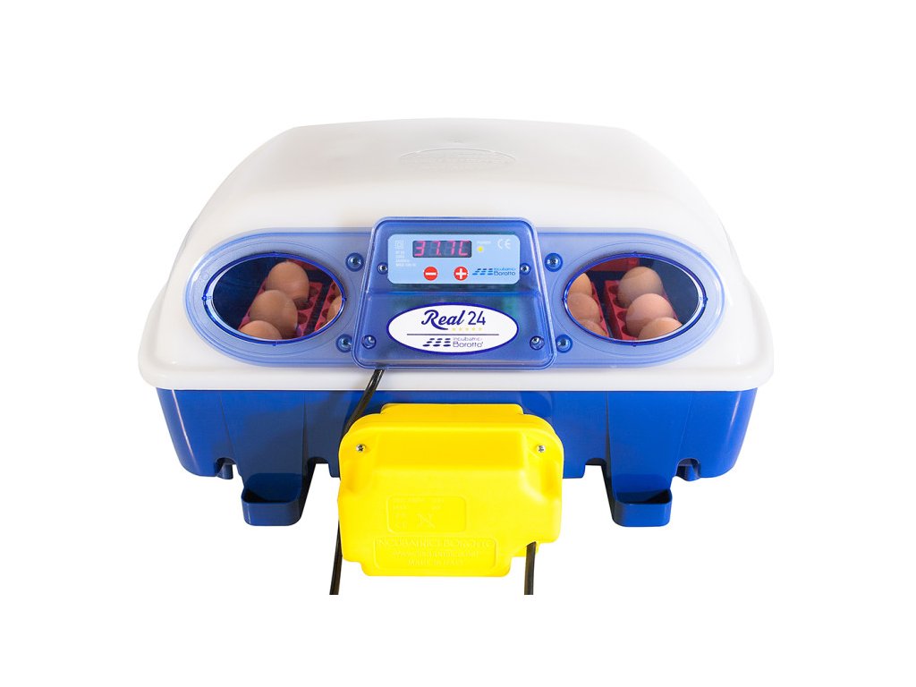 Automatická líheň na vejce REAL 24 AUTOMATIC - pro líhnutí drůbeže vhodná pro líhnutí vodní a hrabavé drůbeže - pro kuřata, křepelky, kachny, krůty, husy, ale také exotické ptactvo. S automatickým otáčením až 24 ks vajec - možnost i ručního otáčení vajec, s digitální regulací teploty od 30 do 40°C, s manuální regulací vlhkosti, s nádržkou na přívod vody a s teploměrem.