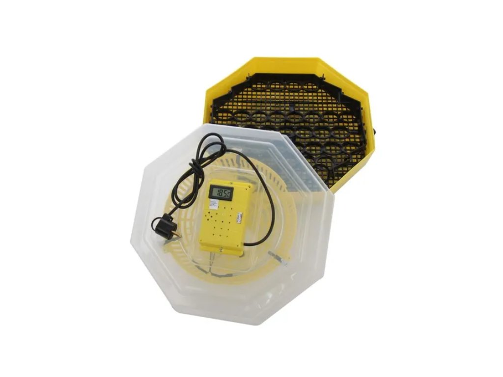 Líheň na vejce s poloautomatickým otáčením pro až 41 slepičích vajec je ideální pro líhnutí vodní i hrabavé drůbeže – kuřat, křepelek, kachen, krůt, hus i bažantů. Nabízí regulaci teploty v rozmezí 35–40 °C, manuální regulaci vlhkosti a přehledný digitální displej s ukazatelem teploty a vlhkosti.