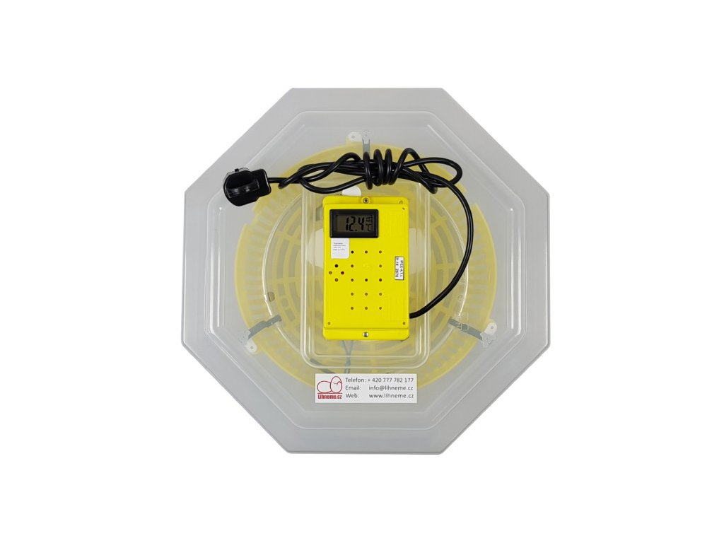 Teplotu lze nastavit a případně dále regulovat v rozsahu od 35 do 40°C pomocí manuálního regulátoru u elektronické řídicí jednotky. Panel je vybaven digitálním displejem s ukazatelem teploty a vlhkosti, a na levém boku otočným regulátorem pro potřebné nastavení teploty v líhni.