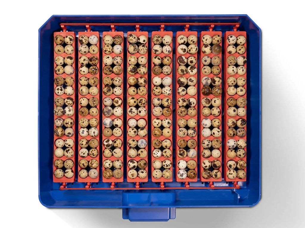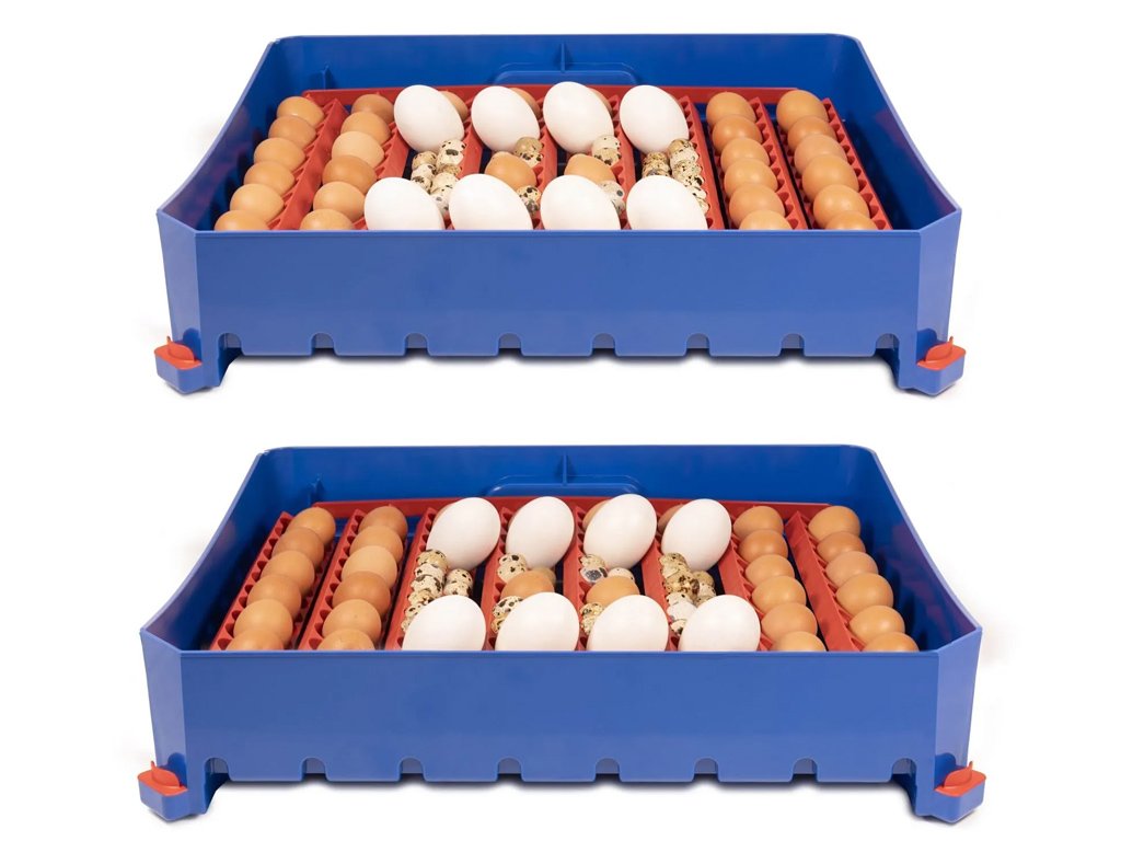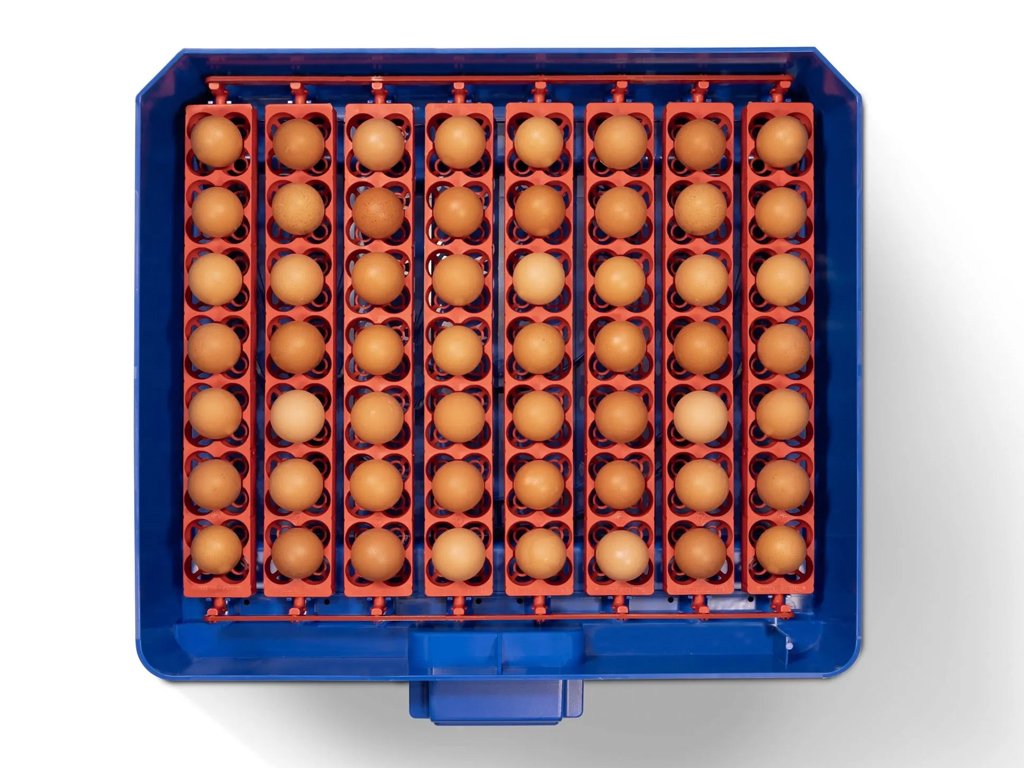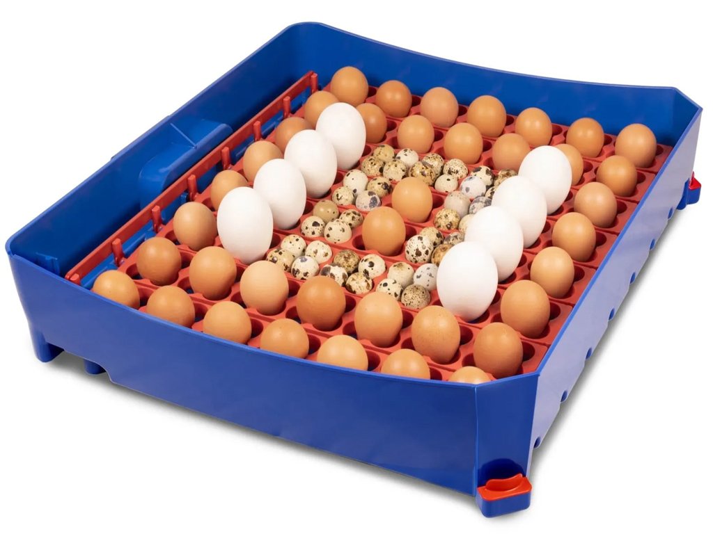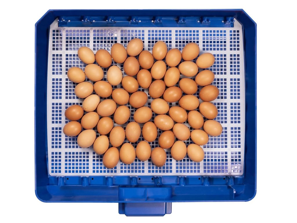Kapacita s otočným roštem: 56 slepičích, 224 křepelčích, 56 husích, 56 kachních nebo 56 bažantích vajec.