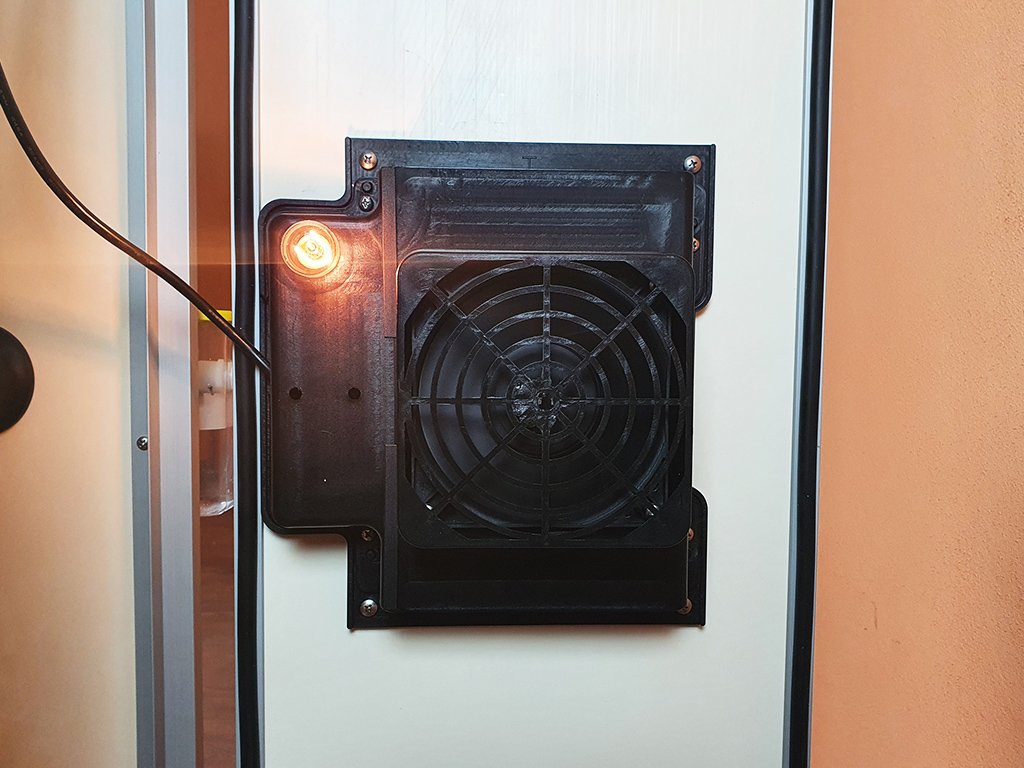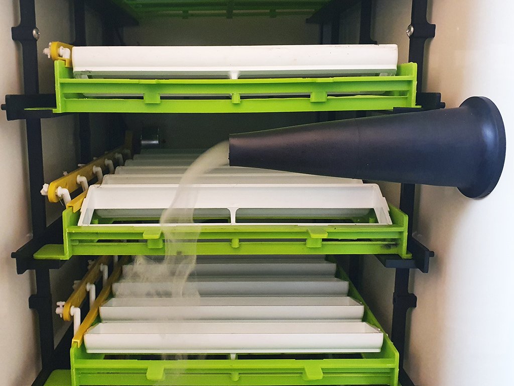 U drůbeže, kde je potřeba v průběhu líhnutí ochlazovat a následně rosit vejce, využijete funkci aktivního periodického chlazení, které automaticky dle nastavení dokáže snížit v pravidelných intervalech teplotu i vlhkost na nízké hodnoty, a tím ochladit vejce a simulovat chování drůbeže, která během líhnutí na určitou dobu opouští hnízdo, aby se napila a nasytila. Na konci fáze ochlazování si líheň automaticky zvýší vlhkost, aby simulovala rosení vajec, ke kterému dochází v přírodě tak, že se drůbež během přestávky namáčí a následně takto mokrá nasedá zpět na vejce.
