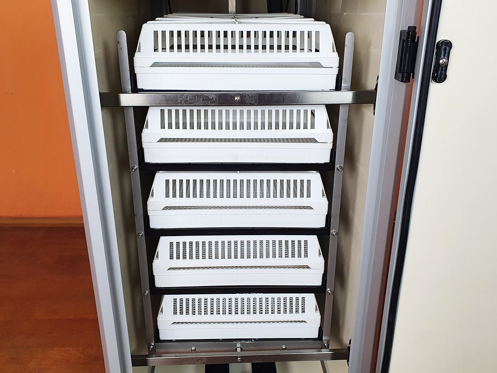 Kapacita líhně: 350 slepičích, 990 křepelčích, 150 husích, 240 kachních nebo 480 bažantích vajec.