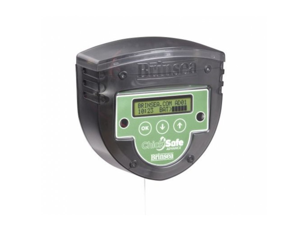 BRINSEA CHICK SAFE ADVANCE - špičkový systém pro automatické otevírání a zavírání kurníkových dvířek do maximální váhy 4 kg od jednoho z nejlepších výrobců chovatelských produktů, společnosti BRINSEA. Automatická dvířka jsou vybavena světelným senzorem, programovatelným časovačem, samo-kalibrační funkcí, indikátorem stavu baterie a napájením pomocí 4 AA baterií. Součástí balení jsou hliníková dvířka s platovými lištami. Dvířka jsou pro otvor na kurníku o maximálních rozměrech 28 x 34cm. Výška bočních lišt je 55 cm a rozměry jednoho plátu dvířek je 30 x 18,5cm (součástí balení jsou 2 pláty).