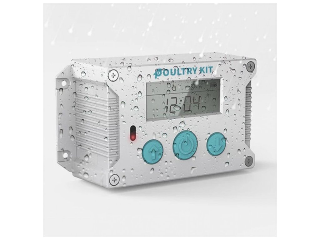 Zařízení pro otevírání/zavírání kurníku je osazeno v odolném plastovém pouzdru. Dvířka jsou zvedána pomocí motorku, který zvládne zvednout dvířka až o hmotnosti 2 kg. Dvířka nejsou součástí balení, je možno je zakoupit buď zvlášť nebo jako SET s jednotkou, případně můžete použít jakákoli stávající vertikálně otevíraná dvířka.