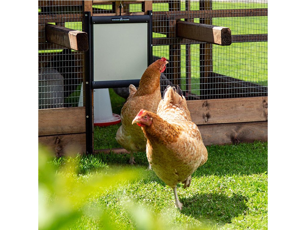 Automatické otevírání a zavírání kurníku je elektronické zařízení, které pomocí motorku pravidelně ráno otevře dvířka kurníku a večer je zase bezpečně uzavře. Díky tomuto automatizovanému systému už nebudete muset brzy ráno vstávat a jít za každého počasí otevřít kurník. Zároveň se nemusíte bát, že Vaše slepice napadne v noci liška nebo jiný predátor, protože zařízení za Vás kurník vždy včas bezpečně uzavře. Jakmile jsou dvířka úplně spuštěna, automaticky se uvolní křídla, která dvířka pevně uzamknou. Tento jedinečný samo uzamykací systém je navržen tak, aby zabránil predátorům zvednout dveře kurníku. Automatické otevírání kurníku Vám tedy zajistí pohodlí, klid a také ochranu pro slepice.
