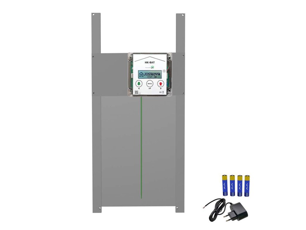 Automatické otevírání a zavírání kurníku s rámem a bezpečnostními dvířky JOSTechnik HK-Bat s rozměry 23 x 34 cm. Jedná se o kompletní automatický systém ovládání pohybu dvířek se světelným senzorem, časovačem a funkcí nouzového otevření dvířek. Integrovaný LCD displej zajišťuje snadné nastavení a změnu časování v případě potřeby. Vhodné až do teploty -30°C.