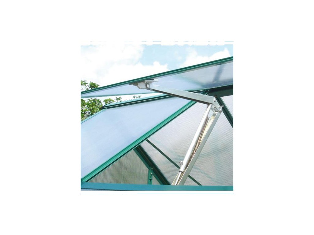 Automatický otvírač pro střešní okno - obsahuje píst s pákou, kterým nahradíte manuální otvírání. Píst funguje na bázi tepelné roztažnosti a se zvyšující se teplotou ve skleníku posunuje pákou a otvírá okno. Tím zabraňuje přehřátí skleníku v parném létě a případnému podchlazení v noci nebo chladnějších dnech. Regulováním teploty ve skleníku chrání rostliny před uhynutím z nedostatku proudícího čerstvého vzduchu a vysoké teploty. Otvírání lze nastavit v rozmezí teplot 15 °C až 25 °C.