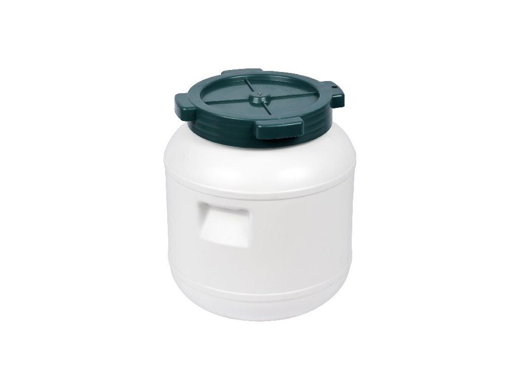 Plastový sud na zelí se šroubovacím víkem o objemu 10 litrů. Průměr: 24 cm. Výška: 27 cm.