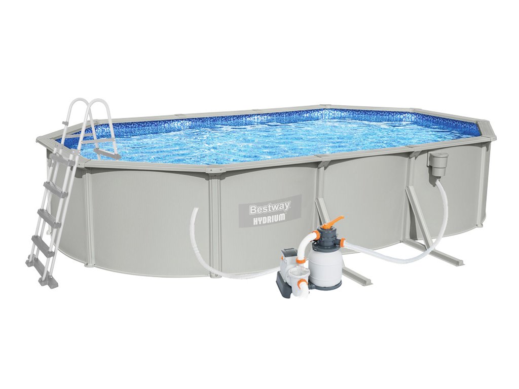 Užijte si léto na Vaší zahradě s tímto luxusním bazénem! Nadzemní bazén s konstrukcí HYDRIUM má pevnou kovovou konstrukci, a i přes svoji velikost se velmi jednoduše montuje. Vnější 0,4 mm ocelové stěny, pevný kovový okraj (16 cm), zabudovaný skimmer.