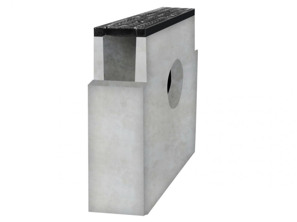 Betonová vpusť kompatibilní s betonovým žlabem C250 . Odtok sběrné vpusti je řešen připojením trubky do boků šachty.