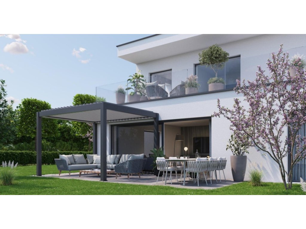 Špičková kvalita a moderní design - to je luxusní bioklimatická pergola s výškou 255 cm od značky v rozměrech Biohort. Komfort za každého počasí. Díky inovativní sendvičové konstrukci si užijete výrazně snížený hluk při dešti i menší tepelné záření ze střechy. Vytvořte si oázu pohody ve vašem venkovním prostoru. Pergolu lze rozšířit o nastavitelné LED osvětlení, sluneční clonu a lamelovou boční stěnu, která zajistí více soukromí. Vaše zahrada, terasa nebo dvorek tak dostanou zcela nový rozměr.