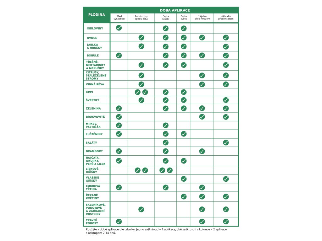 • Ochrana rostlin: Ochrana vydrží až 14 dní po aplikaci.