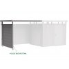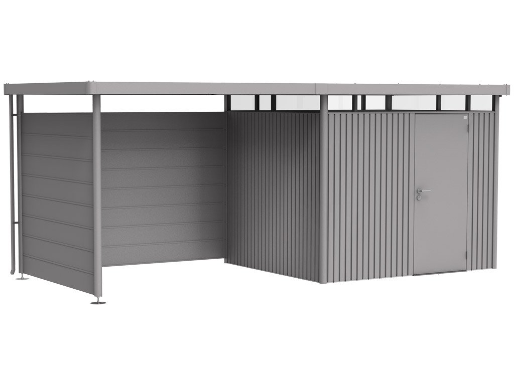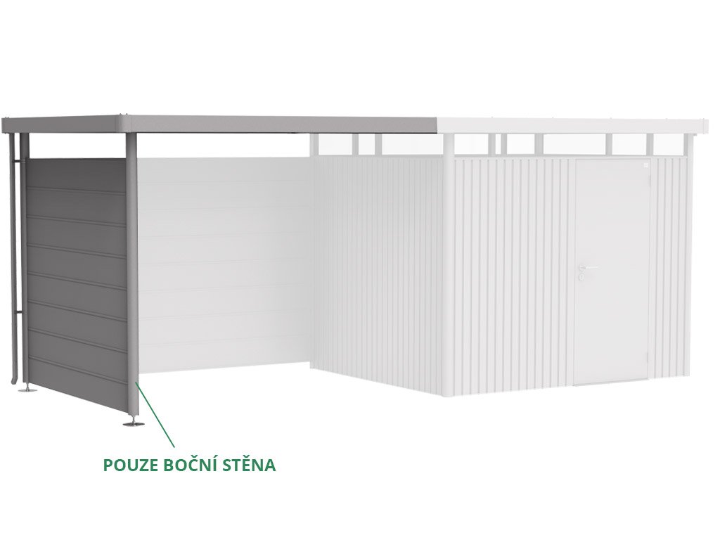 Boční stěna se upevňuje na boční stříšku na přístrešek HighLine® H2 a H3 na straně s dešťovým žlabem - volitelně na jedné nebo obou stranách. Můžete si tak vytvořit krytý otevřený prostor a z domku na nářadí vytvořit zahradní domek s pergolou.