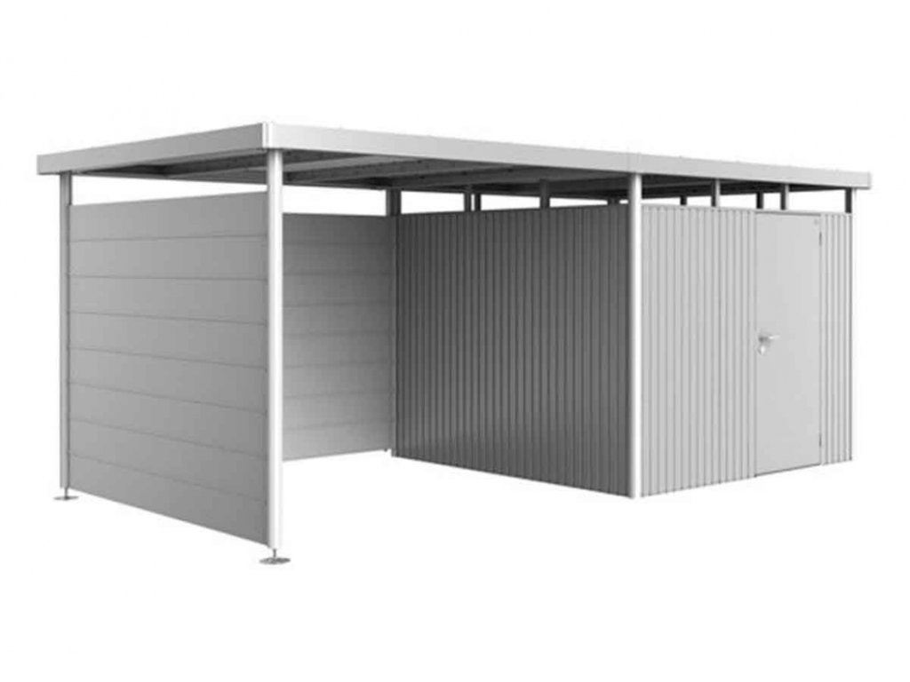 Boční stěna se upevňuje na boční stříšku na přístrešek HighLine® H2 a H3 na straně s dešťovým žlabem - volitelně na jedné nebo obou stranách. Můžete si tak vytvořit krytý otevřený prostor a z domku na nářadí vytvořit zahradní domek s pergolou.