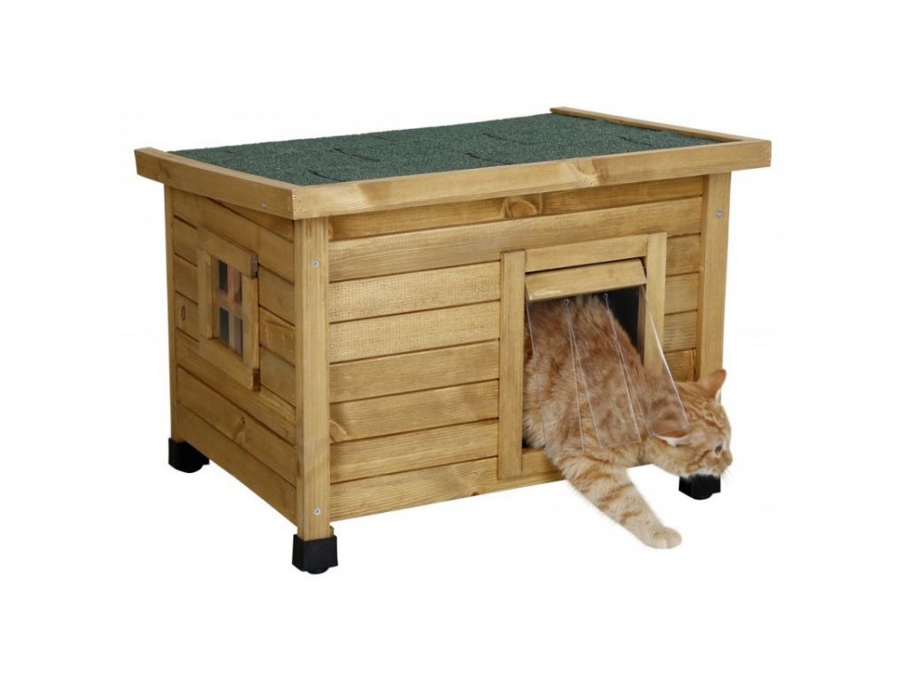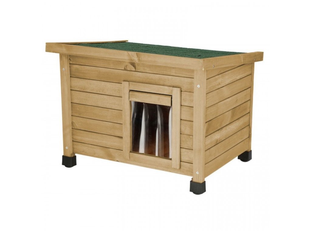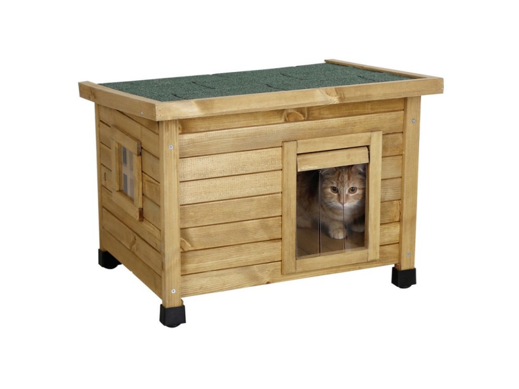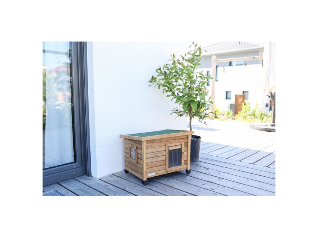 2. Komfort pro vašeho mazlíčka: Odklopná dvířka s průhlednými lamelami chrání kočku před větrem a chladem, zatímco malé okénko s plexisklem zajišťuje dostatek světla.
