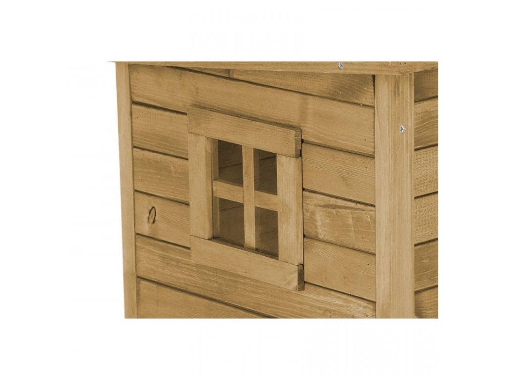 5. Snadná údržba: Střecha pokrytá nepromokavým materiálem chrání domeček před vlhkostí, avšak doporučujeme umístění pod přístřešek pro ještě lepší ochranu.
