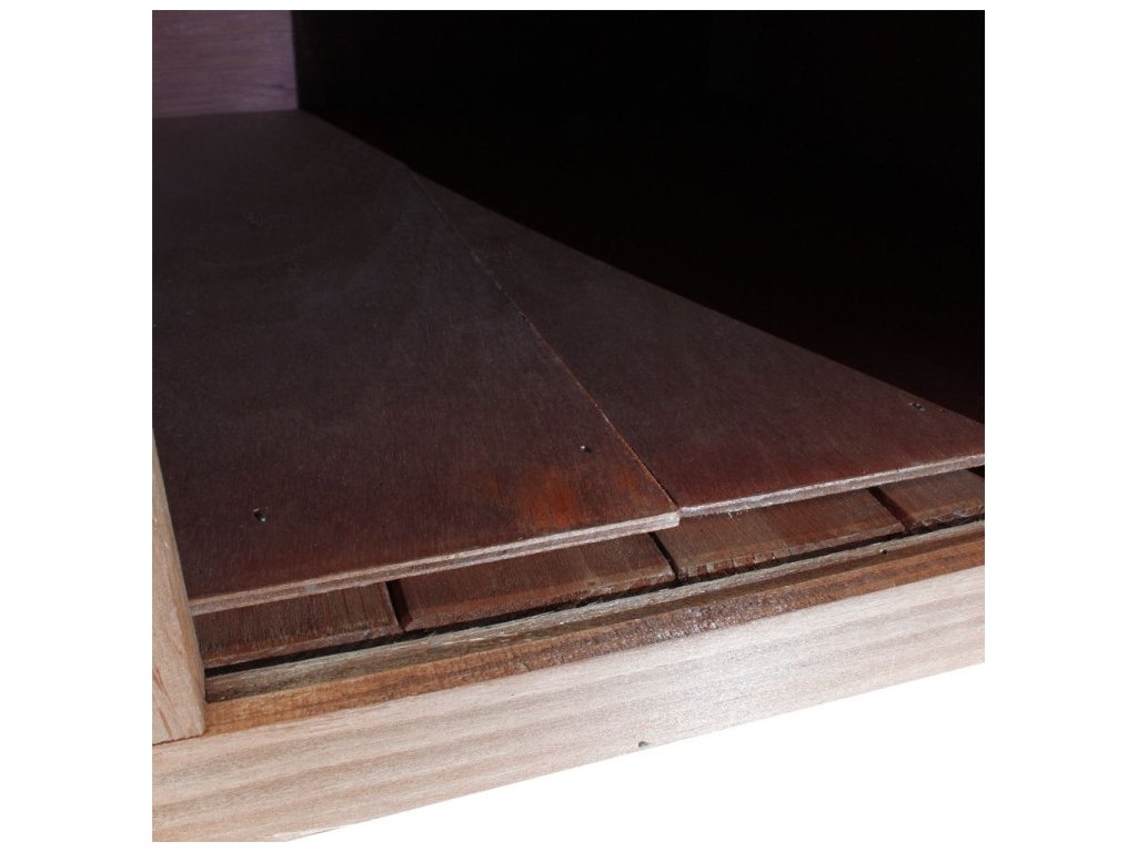 - Dřevěné stěny a podlaha: Jsou vyrobeny ve 3 vrstvách, což poskytuje vynikající izolaci. Na 18 mm hrubou masivní dřevěnou desku je aplikována 10 mm vrstva polystyrenu a 3 mm umývatelná dřevovláknitá deska. Tento trojvrstvý systém zajišťuje optimální izolaci interiéru a pohodlí vaší kočky.