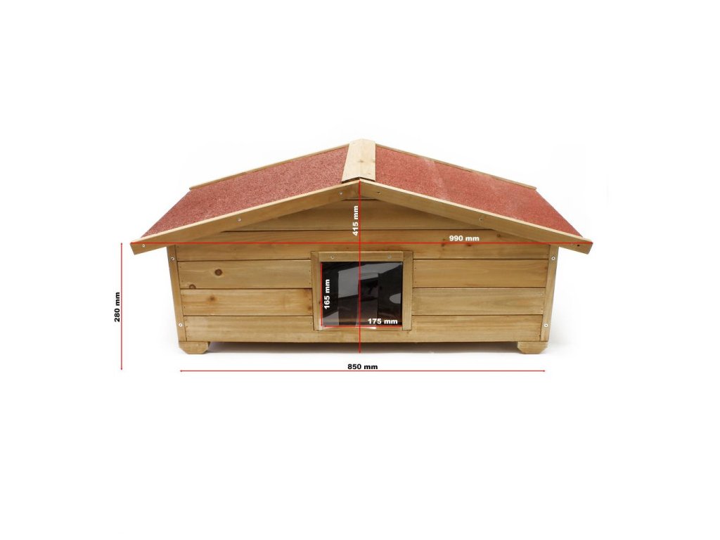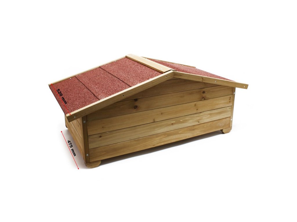 - Stojí na 4 nohách: Zvýšené postavení boudy zajišťuje lepší odolnost proti vlhkosti a udržuje vnitřek suchý.