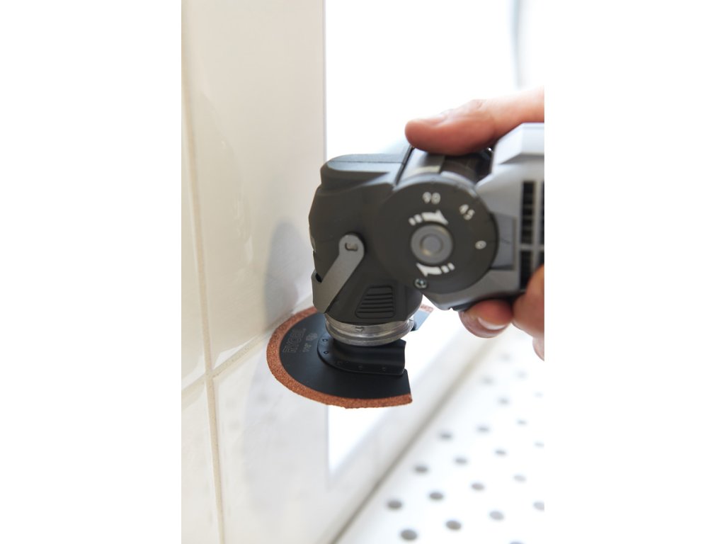Tento stroj byl vyvinut pro suché broušení malých ploch, řezání do hloubky, škrábání, leštění nebo obrušování. Stačí jen nasadit správné příslušenství. Odstraníte prasklé dlaždice, vyříznete otvor pro elektrickou zásuvku, přeříznete měděnou trubku, PVC potrubí, přebrousíte nábytek - všechno jedním nástrojem.