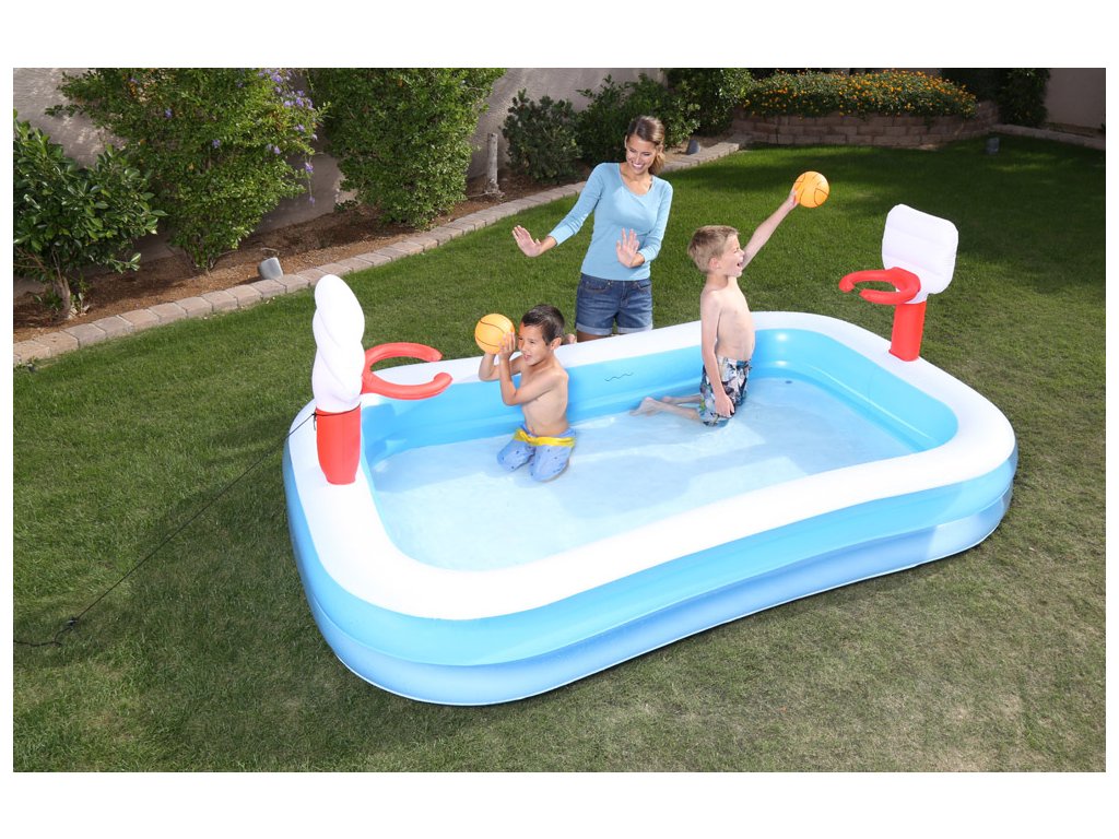 Zapomeňte na horko a užijte si bezstarostnou zábavu s dětským nafukovacím bazénem obdélníkovým bazénem! S integrovanými koši a míčem je tento bazén ideální pro hraní basketbalu, přičemž zároveň poskytuje osvěžení v horkých letních dnech. Nechte se unášet vlnami zábavy a relaxace přímo ve vaší zahradě.