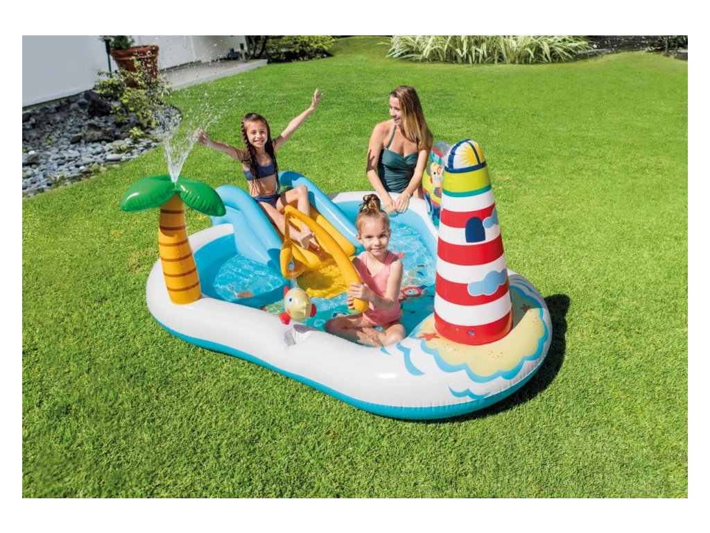 Užijte si letní radovánky a zábavu s bazénovým hracím centrem FISHING FUN! Tento úžasný set obsahuje nafukovací skluzavku, osvěžující sprchu ve tvaru palmy a další skvělé příslušenství, které zajistí dětem spoustu zábavy. Skluzavka umožňuje dětem s radostí sklouznout do vody, zatímco sprcha ve tvaru palmy přináší do bazénu tropickou atmosféru. Kromě toho jsou součástí balení 2 rybičky, 2 pruty a 6 plastových míčků, které zaručí nekonečné hodiny her a zábavy.