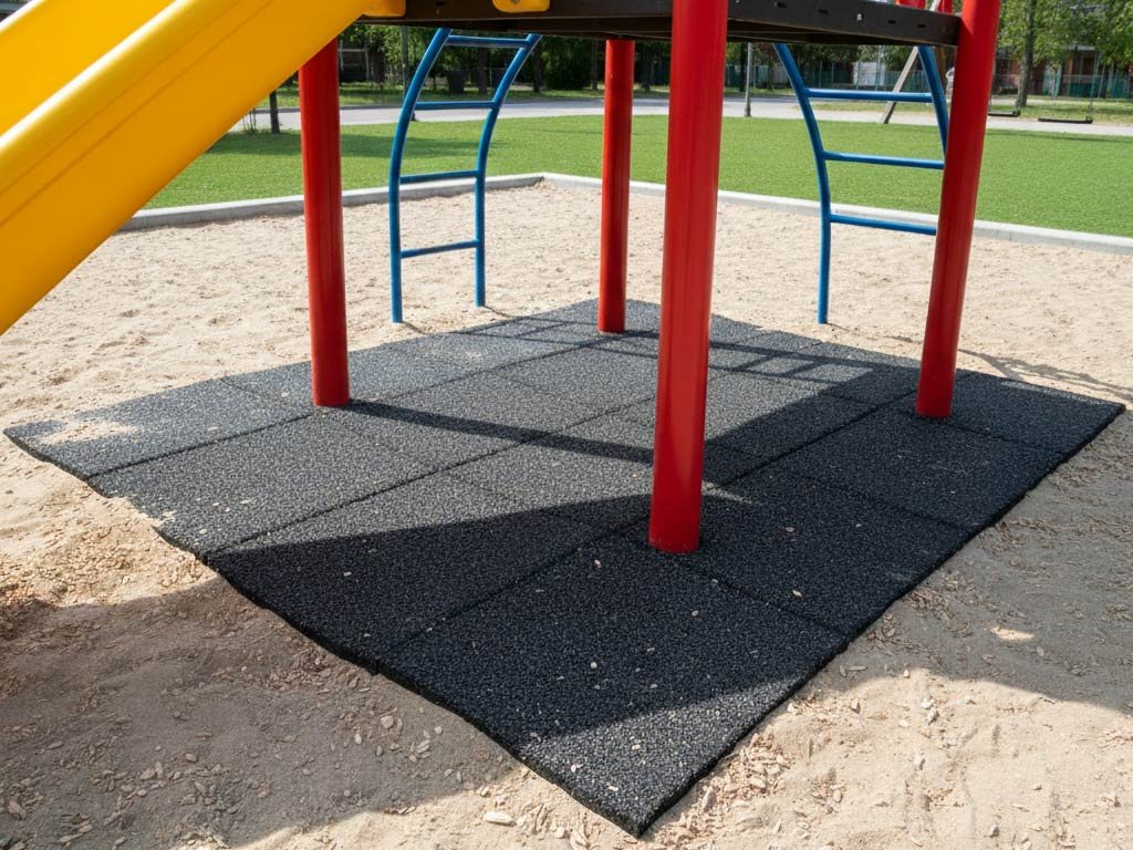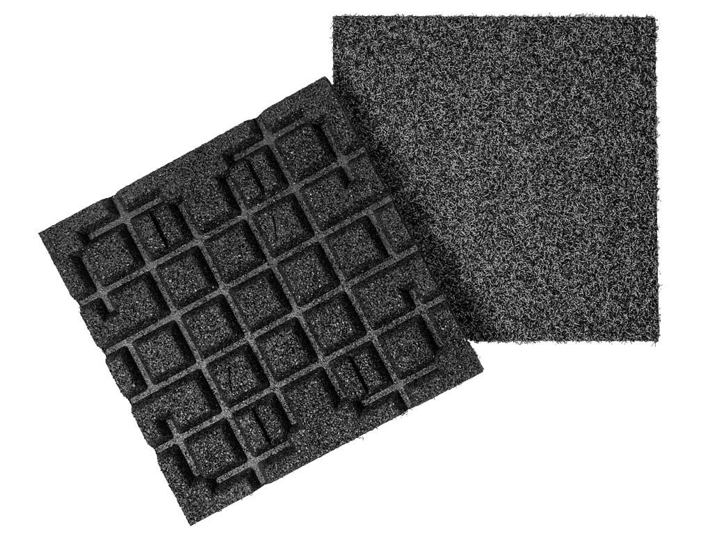 - Spodní strana: Gumová protiskluzová dlaždice s nopkovou strukturou