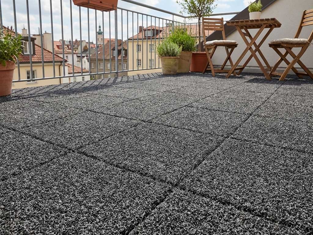 Gumové dlaždice na balkon můžete barevně kombinovat mezi sebou nebo s trávníkovými dlaždicemi Aslon.