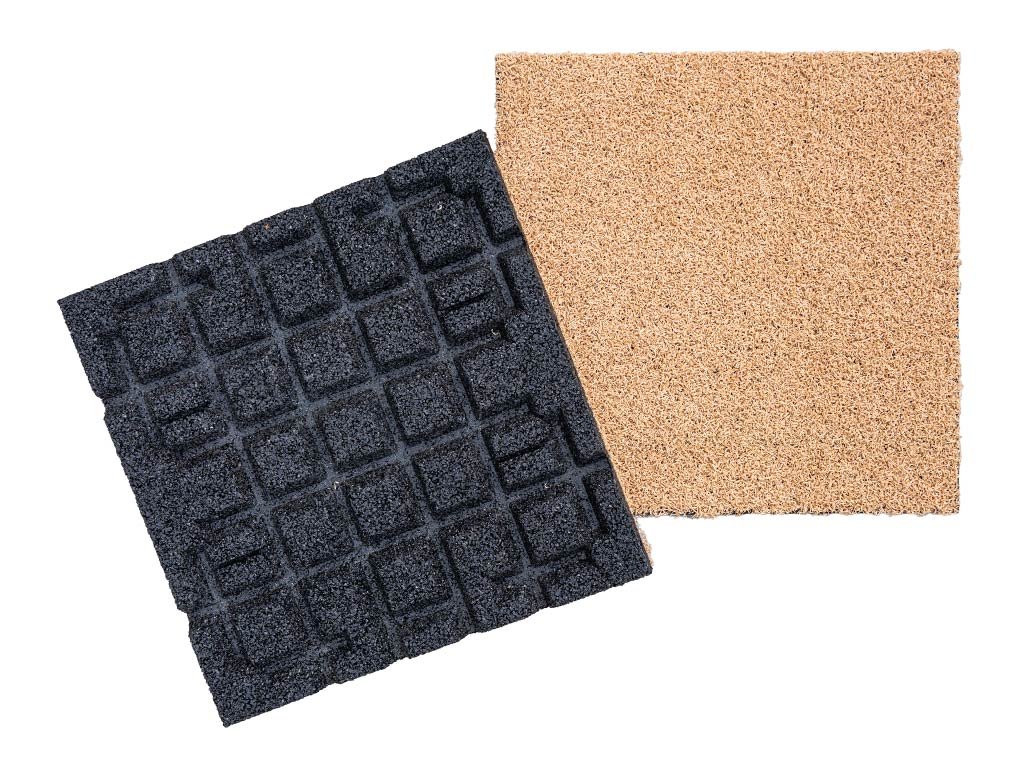 - Spodní strana: Gumová protiskluzová dlaždice s nopkovou strukturou