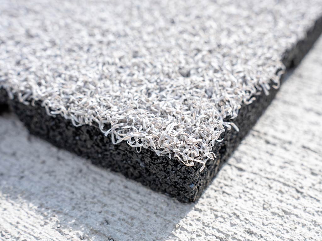 - Kombinace umělého trávníku a gumové dlaždice pro odolný a estetický povrch