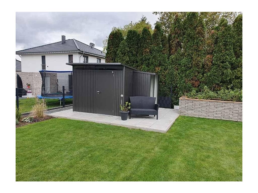 Naši nabídku tvoří především zahradní domky, které jsou zpracovány z vysoce kvalitních materiálů, jako je například žárově pozinkovaný plech z oceláren v Německu a Rakousku, který je používán i pro výrobu aut německých značek. I proto je na zahradní domky poskytována 20letá záruka proti korozi.