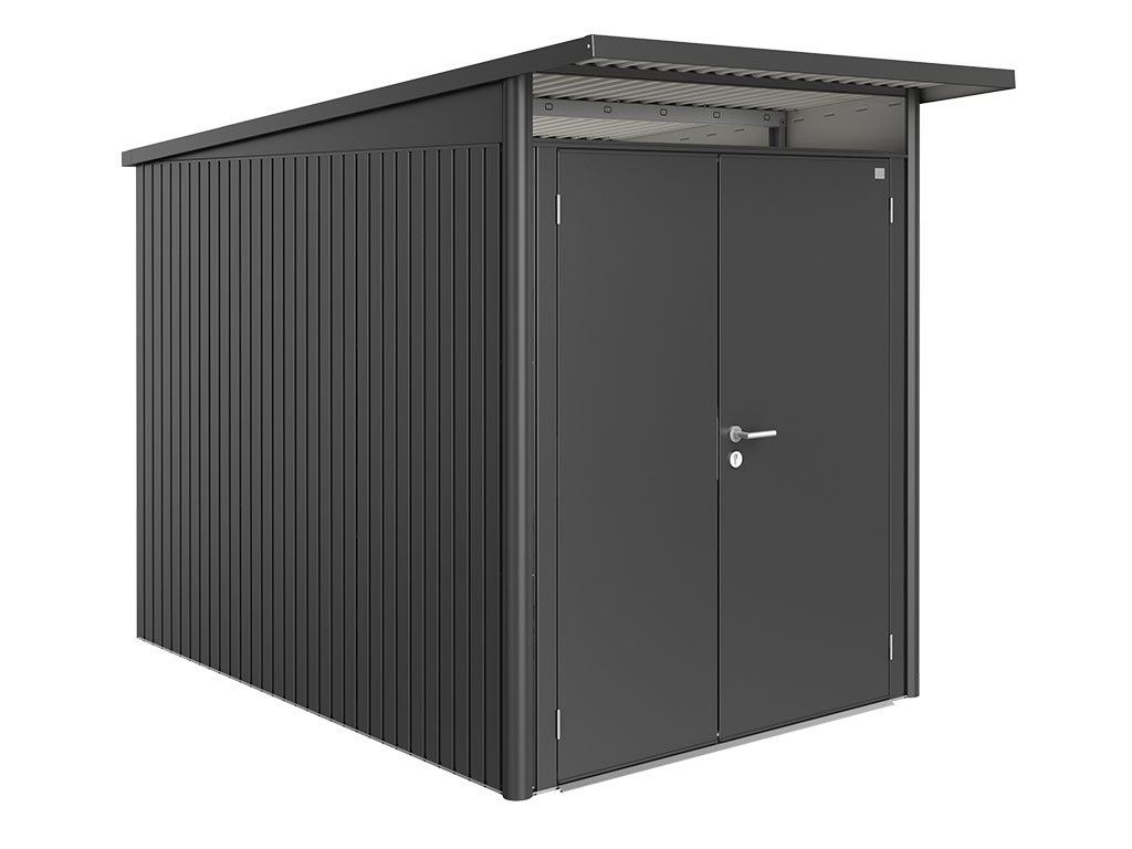 Pořiďte si stylový kovový domek na nářadí AvantGarde A3 prémiové kvality s pultovou střechou, který vyhovuje i nárokům moderní architektury. Domek je široký 180 cm (přední strana s dveřmi) a 300 cm dlouhý(včetně přesahu střechy).