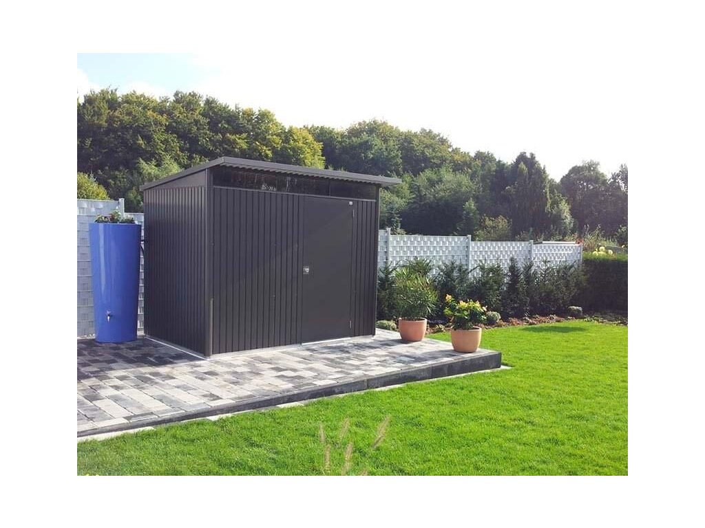 Domek na nářadí AVANTGARDE A4, šedá metalíza, jednokřídlé dveře