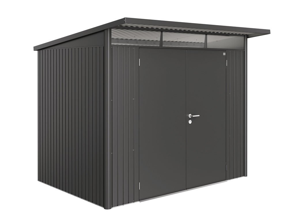 Domek na nářadí AVANTGARDE A5, šedá metalíza, dvoukřídlé dveře