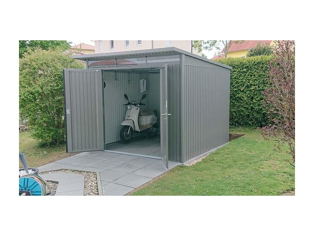 Nemáte kam uskladnit jízdní kola, potřeby k bazénu, zahradní sekačku s nářadím a další věci, které se nevejdou do domu, ale chcete je mít pod střechou a bezpečně pod zámkem? Pořiďte si stylový kovový domek na nářadí AvantGarde A6 prémiové kvality s pultovou střechou, který vyhovuje i nárokům moderní architektury. Domek je široký 260 cm (přední strana s dveřmi) a 260 cm dlouhý(včetně přesahu střechy). Domky AvantGarde nabízíme ve třech barevných provedeních a osmi velikostech.