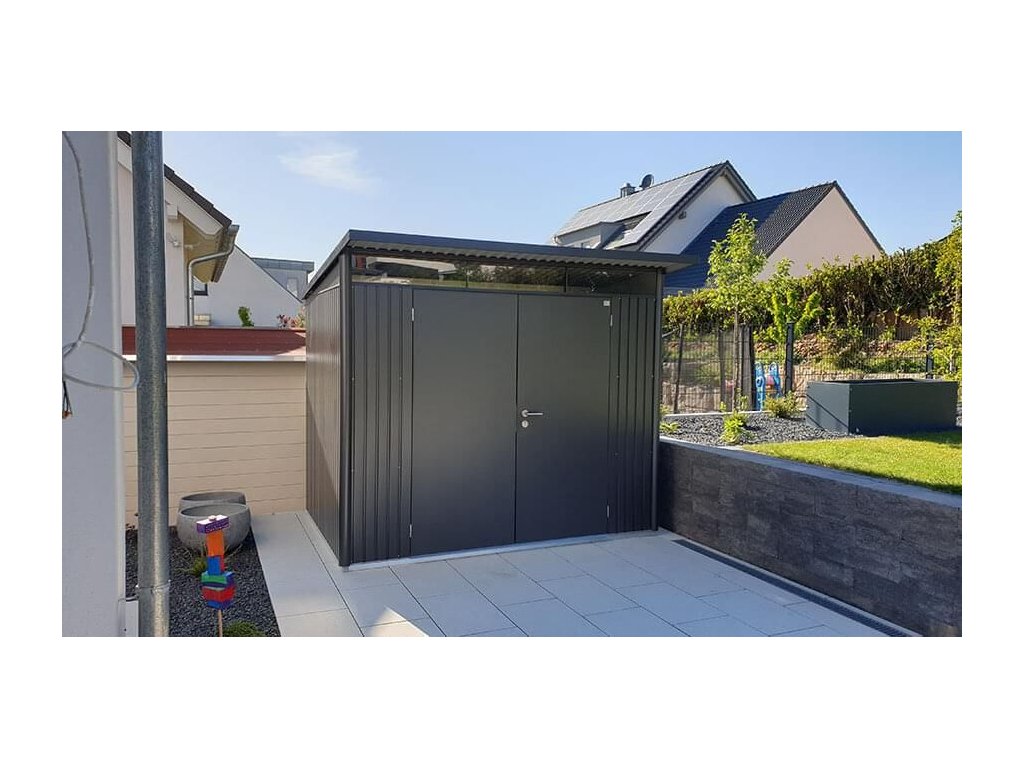 Domek na nářadí AVANTGARDE A7, šedá metalíza, dvoukřídlé dveře