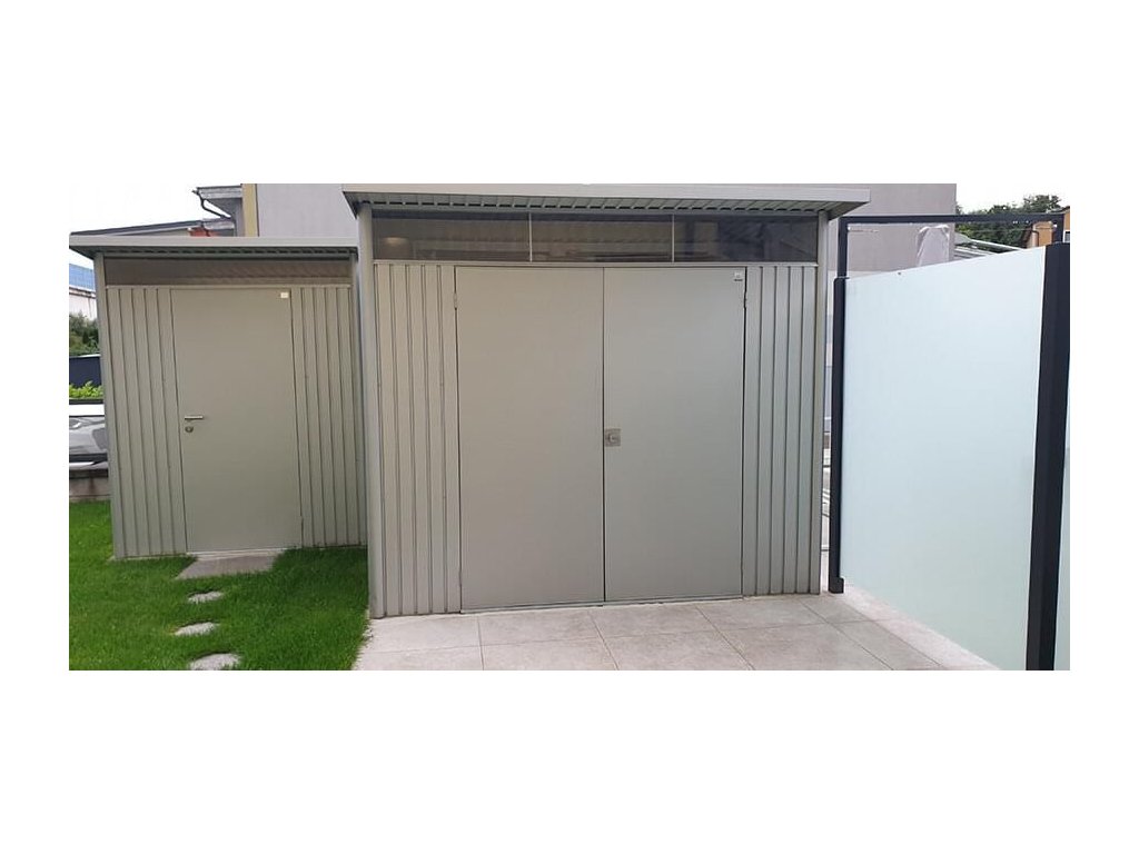 Nemáte kam uskladnit jízdní kola, potřeby k bazénu, zahradní sekačku s nářadím a další věci, které se nevejdou do domu, ale chcete je mít pod střechou a bezpečně pod zámkem? Pořiďte si stylový kovový domek na nářadí AvantGarde A7 prémiové kvality s pultovou střechou, který vyhovuje i nárokům moderní architektury. Domek je široký 260 cm (přední strana s dveřmi) a 300 cm dlouhý(včetně přesahu střechy). Domky AvantGarde nabízíme ve třech barevných provedeních a osmi velikostech.