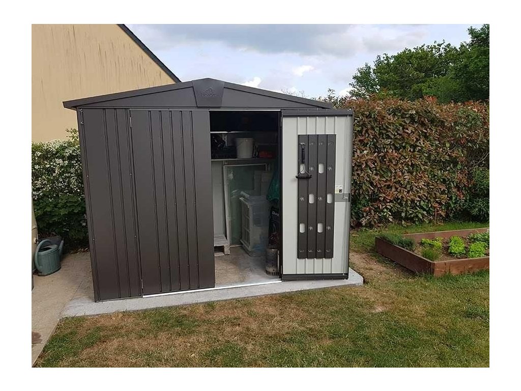 Nemáte kam uskladnit jízdní kola, potřeby k bazénu, zahradní sekačku s nářadím a další věci, které se nevejdou do domu, ale chcete je mít pod střechou a bezpečně pod zámkem? Pořiďte si stylový kovový domek na nářadí Europa 4 prémiové kvality se sedlovou střechou, který vyhovuje i nárokům moderní architektury. Domek je široký 244 cm (přední strana s dveřmi) a 228 cm dlouhý (včetně přesahu střechy). Domky Europa nabízíme ve čtyřech barevných provedeních a devíti velikostech.