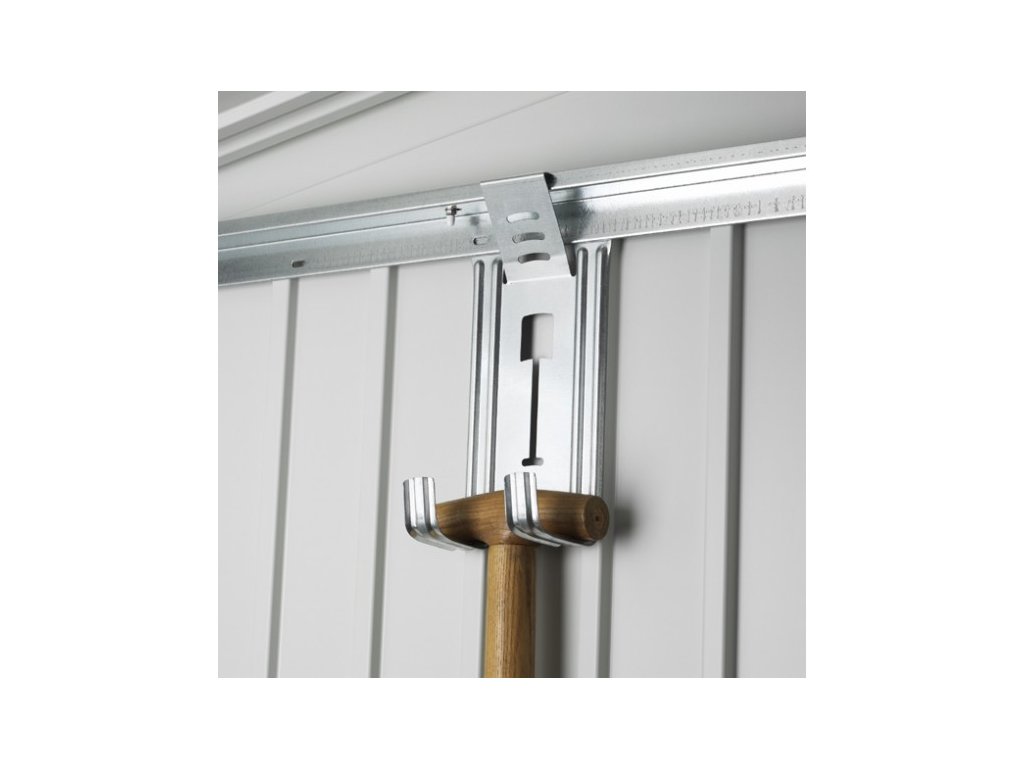 Držáky z žárově pozinkovaného ocelového plechu. Nosnost cca 10 kg. Ideální k zavěšení lopat, pilky, hrábí, zahradních hadic a dalšího zahradního nářadí. Snadná instalace, jednoduše zacvakněte na vybrané místo.