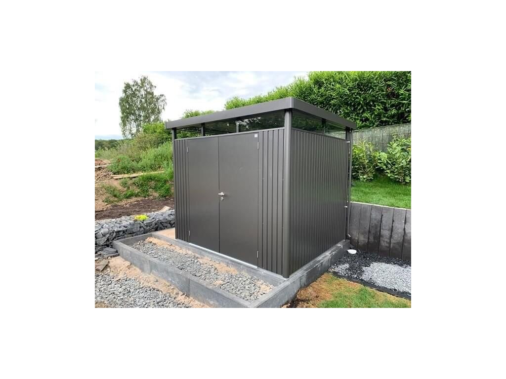 Nemáte kam uskladnit jízdní kola, potřeby k bazénu, zahradní sekačku s nářadím a další věci, které se nevejdou do domu, ale chcete je mít pod střechou a bezpečně pod zámkem? Pořiďte si stylový kovový domek na nářadí HigthLine H4 prémiové kvality s pultovou střechou, který vyhovuje i nárokům moderní architektury. Domek je široký 275 cm (přední strana s dveřmi) a 275 cm dlouhý(včetně přesahu střechy). Domky HighLine nabízíme ve třech barevných provedeních a pěti velikostech.