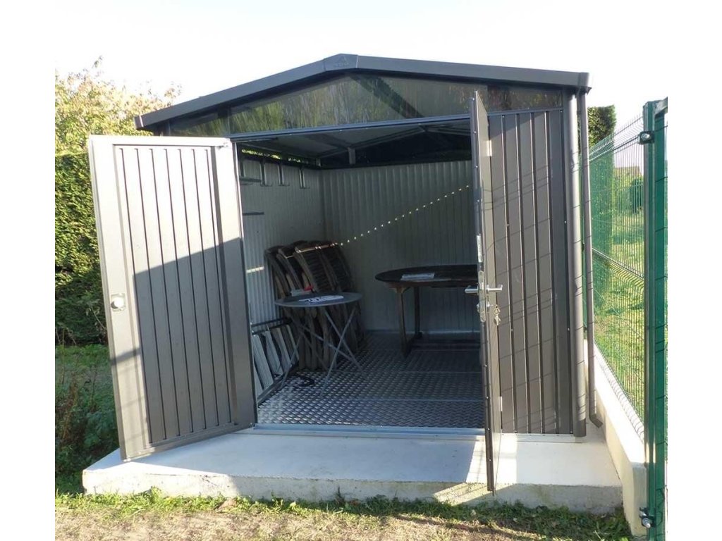 - Pokud chcete stavět domek bez základů tj. na trávníku, budete potřebovat hliníkový podlahový rám. Ten zajistí domku potřebnou stabilitu. Společně dodávané zemní kotvy zajistí dostatečnou stabilitu. V tomto případě doporučujeme vybavit domek hliníkovou podlahovou deskou pro lepší izolaci a ochranu uskladněných předmětů.